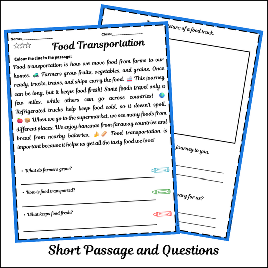Food Transportation | Short Reading Comprehension Creative Worksheet