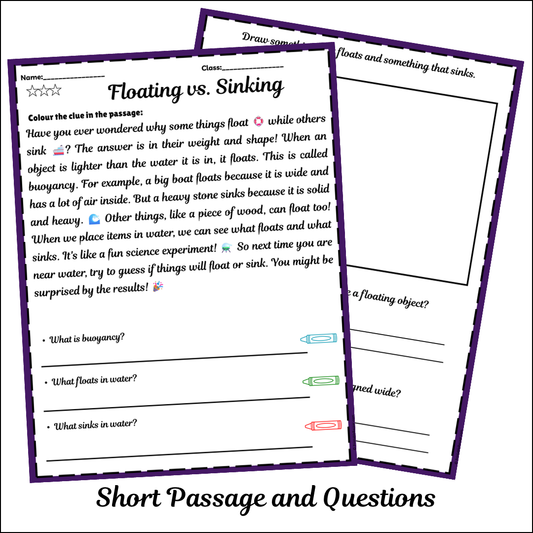 Floating vs. Sinking | Short Reading Comprehension Creative Worksheet