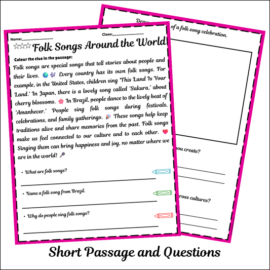 Folk Songs Around the World | Short Reading Comprehension Creative Worksheet