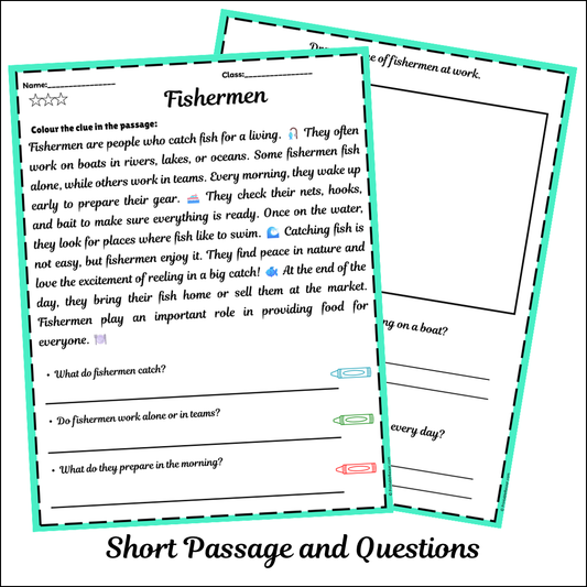 Fishermen | Short Reading Comprehension Creative Worksheet