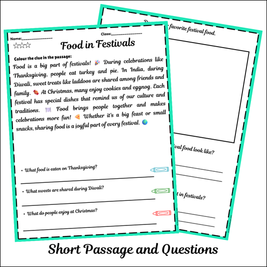 Food in Festivals | Short Reading Comprehension Creative Worksheet