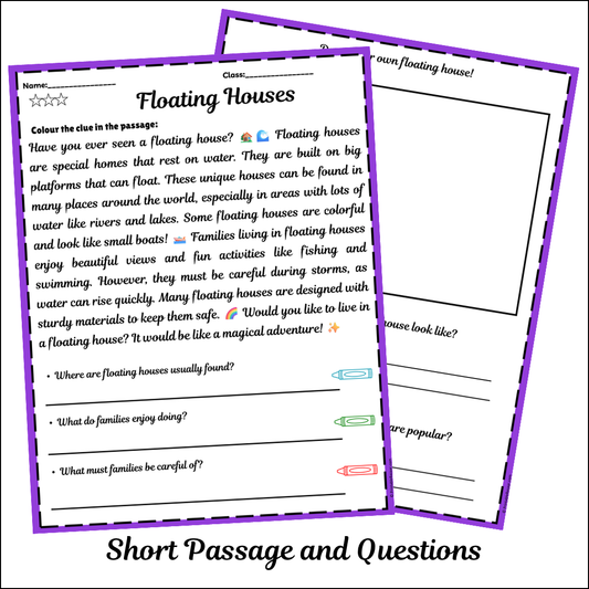 Floating Houses | Short Reading Comprehension Creative Worksheet