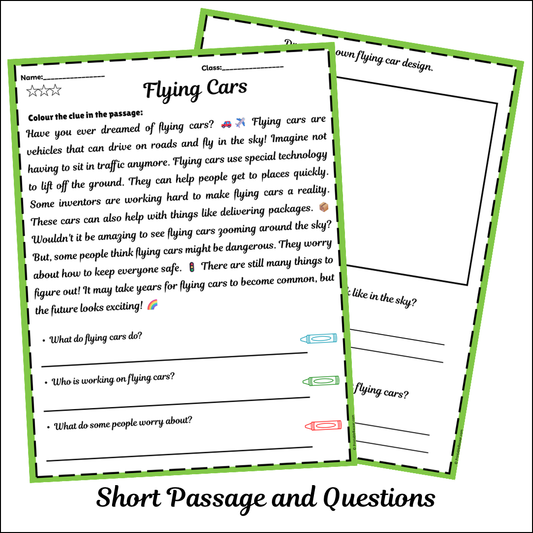 Flying Cars | Short Reading Comprehension Creative Worksheet