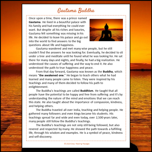 Gautama Buddha Reading Comprehension Passage and Questions | Printable PDF