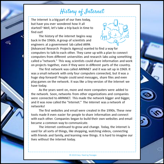 History Of Internet Reading Comprehension Passage and Questions | Printable PDF