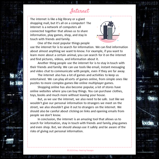 Internet Reading Comprehension Passage and Questions | Printable PDF