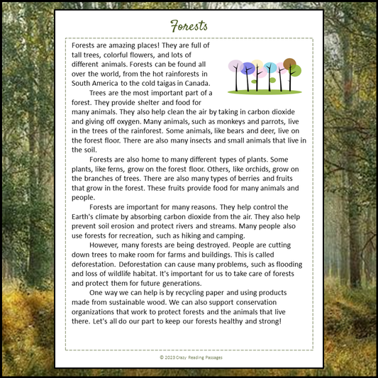 Forests Reading Comprehension Passage and Questions | Printable PDF