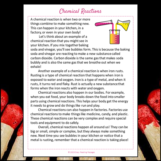 Chemical Reactions Reading Comprehension Passage and Questions | Printable PDF