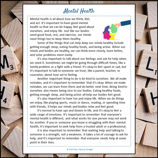 Mental Health Reading Comprehension Passage and Questions | Printable PDF
