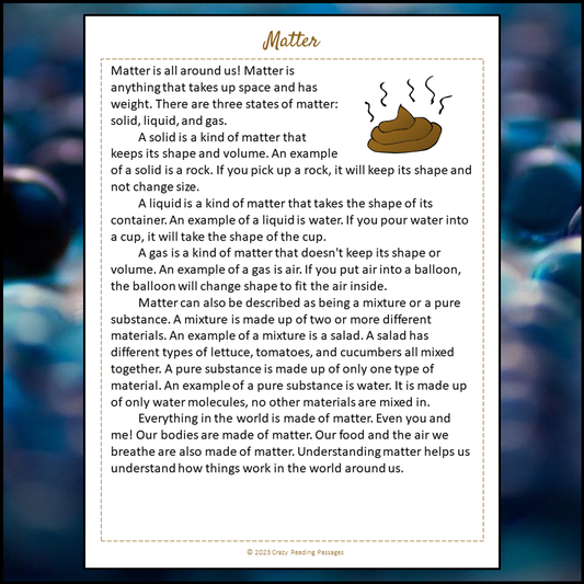 Matter Reading Comprehension Passage and Questions | Printable PDF
