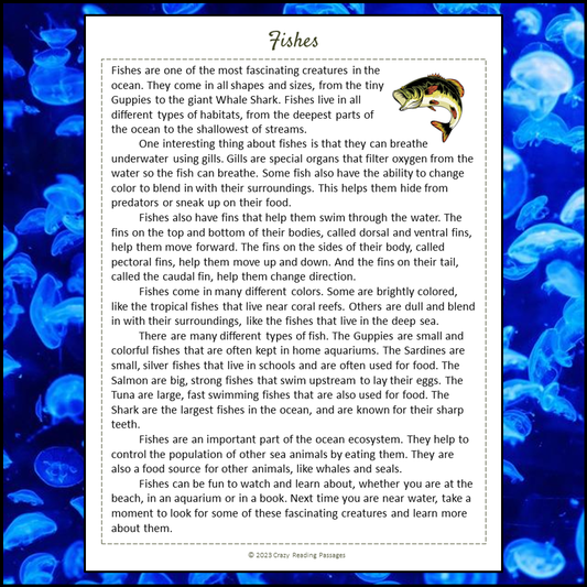 Fishes Reading Comprehension Passage and Questions | Printable PDF