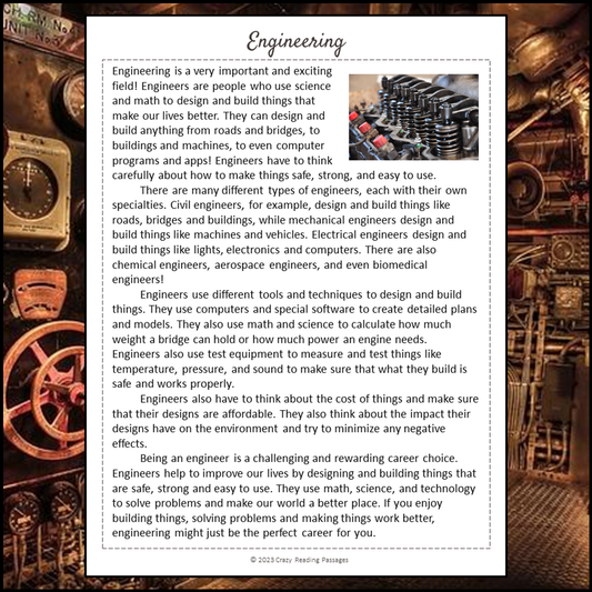Engineering Reading Comprehension Passage and Questions | Printable PDF