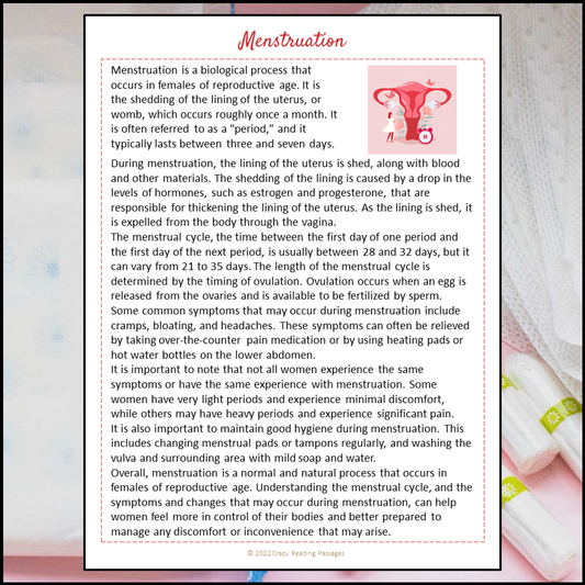 Menstruation Reading Comprehension Passage and Questions | Printable PDF