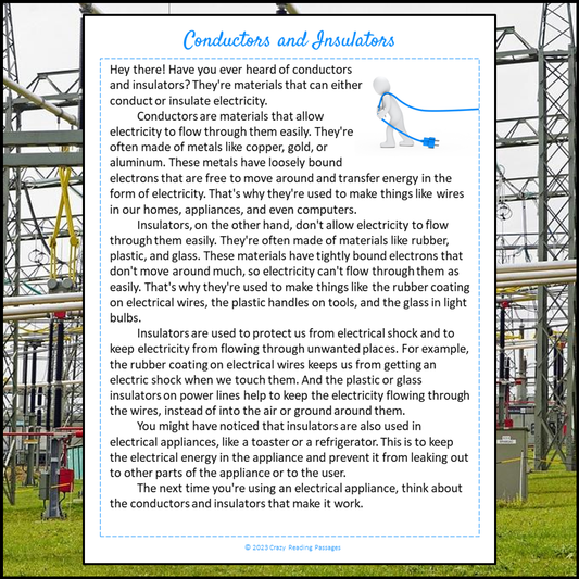 Conductors And Insulators Reading Comprehension Passage and Questions | Printable PDF