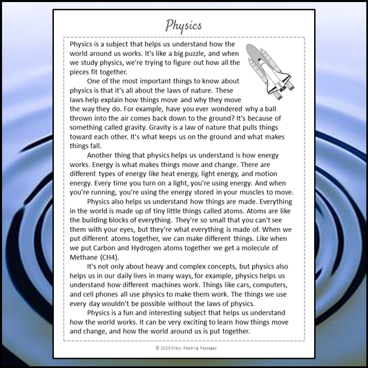 Physics Reading Comprehension Passage and Questions | Printable PDF