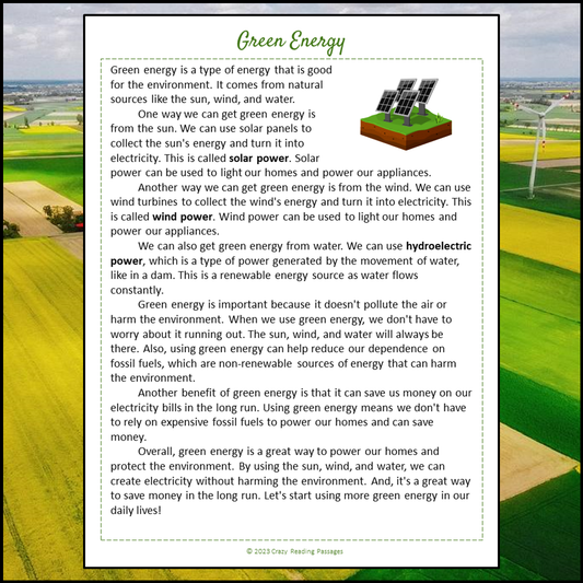 Green Energy Reading Comprehension Passage and Questions | Printable PDF