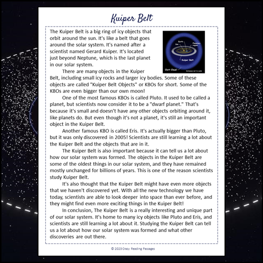 Kuiper Belt Reading Comprehension Passage and Questions | Printable PDF