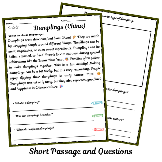 Dumplings (China) | Short Reading Comprehension Creative Worksheet