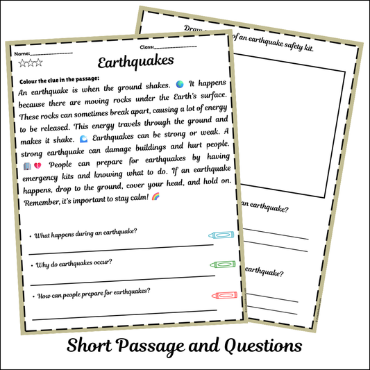 Earthquakes | Short Reading Comprehension Creative Worksheet