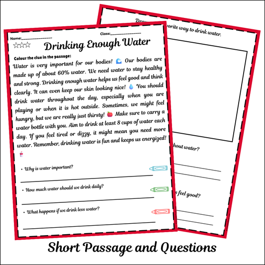 Drinking Enough Water | Short Reading Comprehension Creative Worksheet