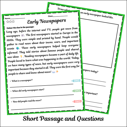 Early Newspapers | Short Reading Comprehension Creative Worksheet