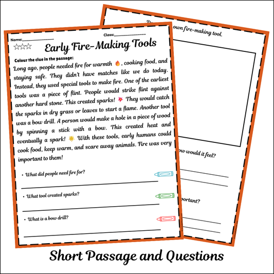 Early Fire-Making Tools | Short Reading Comprehension Creative Worksheet