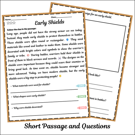 Early Shields | Short Reading Comprehension Creative Worksheet