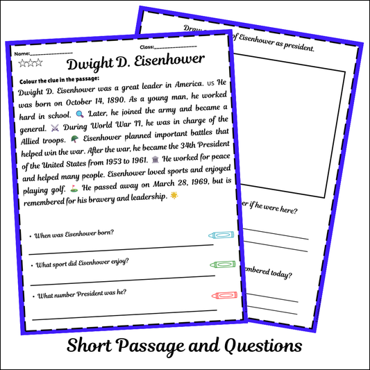Dwight D. Eisenhower | Short Reading Comprehension Creative Worksheet