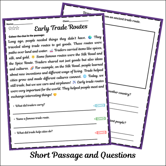 Early Trade Routes | Short Reading Comprehension Creative Worksheet