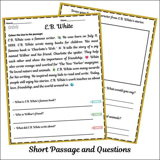 E.B. White | Short Reading Comprehension Creative Worksheet