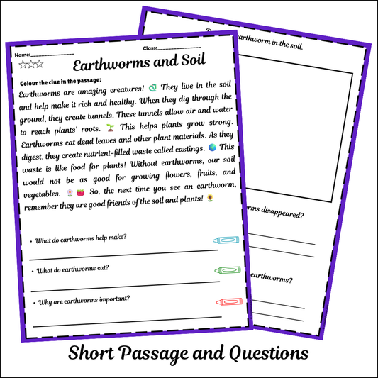 Earthworms and Soil | Short Reading Comprehension Creative Worksheet