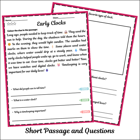 Early Clocks | Short Reading Comprehension Creative Worksheet