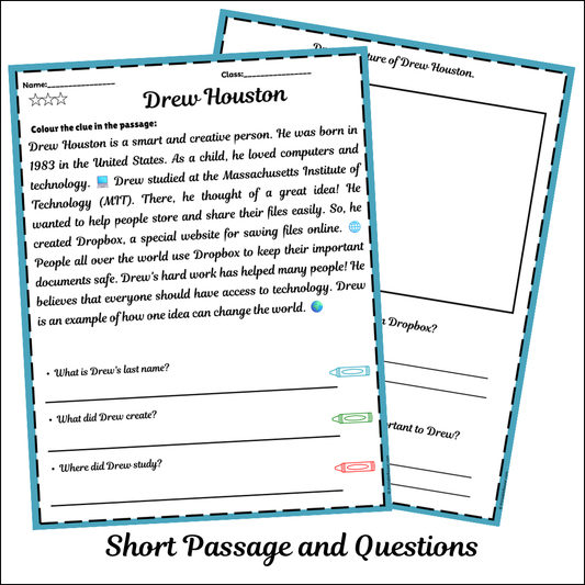 Drew Houston | Short Reading Comprehension Creative Worksheet
