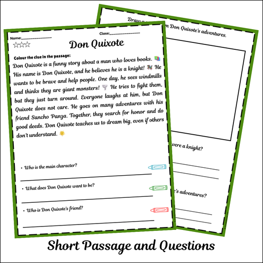 Don Quixote | Short Reading Comprehension Creative Worksheet