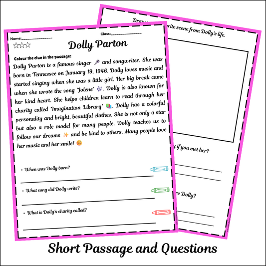 Dolly Parton | Short Reading Comprehension Creative Worksheet
