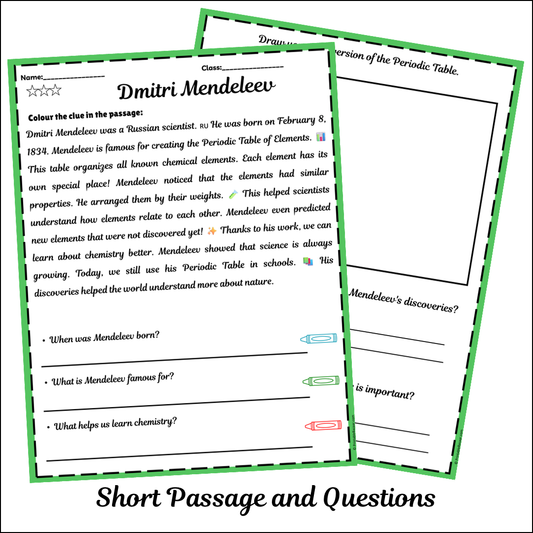 Dmitri Mendeleev | Short Reading Comprehension Creative Worksheet
