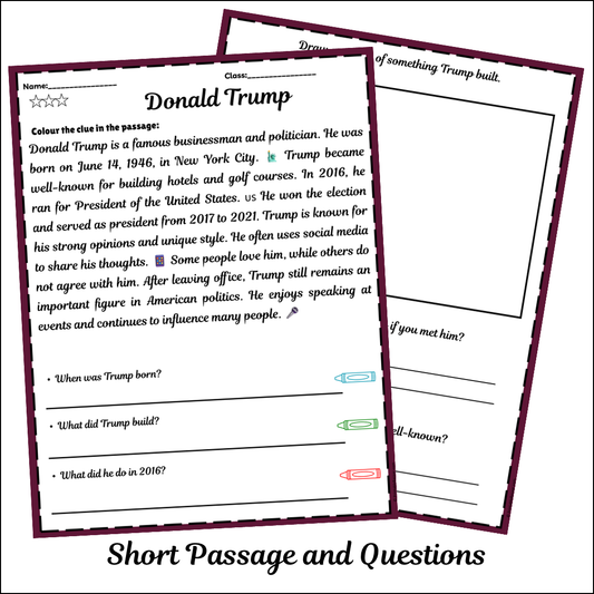 Donald Trump | Short Reading Comprehension Creative Worksheet