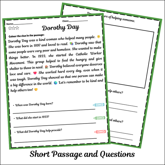 Dorothy Day | Short Reading Comprehension Creative Worksheet
