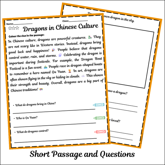 Dragons in Chinese Culture | Short Reading Comprehension Creative Worksheet
