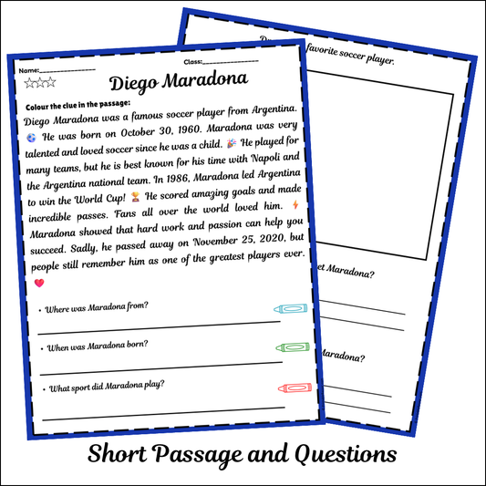 Diego Maradona | Short Reading Comprehension Creative Worksheet