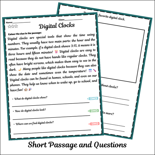 Digital Clocks | Short Reading Comprehension Creative Worksheet