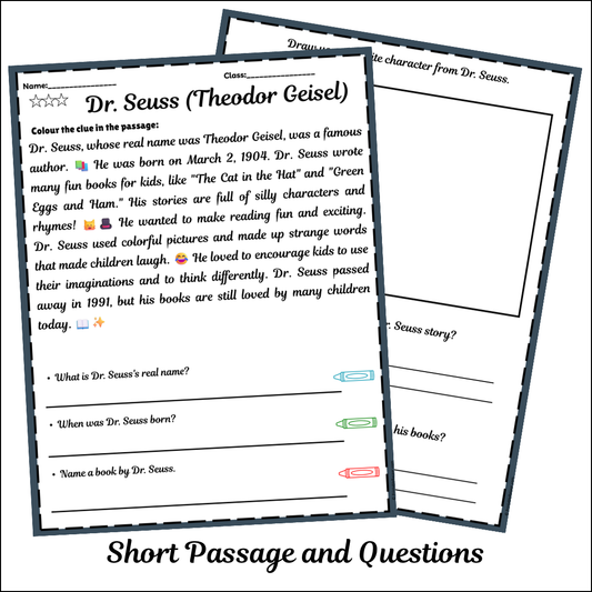 Dr. Seuss (Theodor Geisel) | Short Reading Comprehension Creative Worksheet