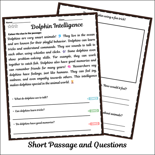 Dolphin Intelligence | Short Reading Comprehension Creative Worksheet