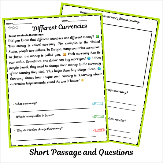 Different Currencies | Short Reading Comprehension Creative Worksheet