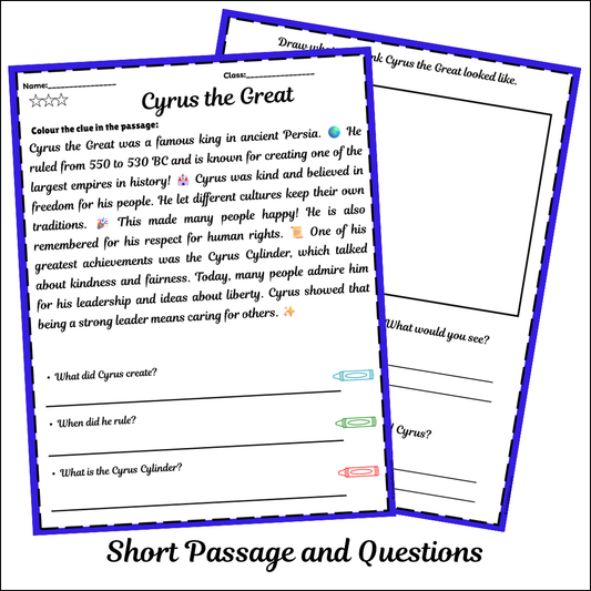 Cyrus the Great | Short Reading Comprehension Creative Worksheet
