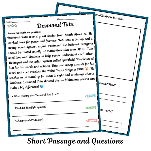 Desmond Tutu | Short Reading Comprehension Creative Worksheet