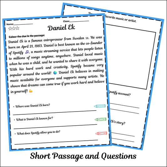 Daniel Ek | Short Reading Comprehension Creative Worksheet