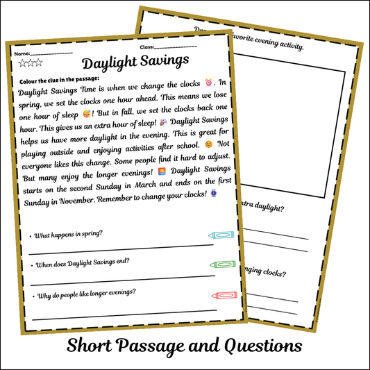 Daylight Savings | Short Reading Comprehension Creative Worksheet