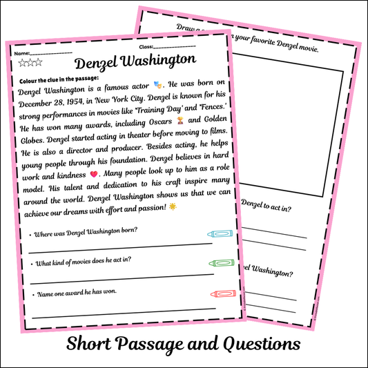 Denzel Washington | Short Reading Comprehension Creative Worksheet
