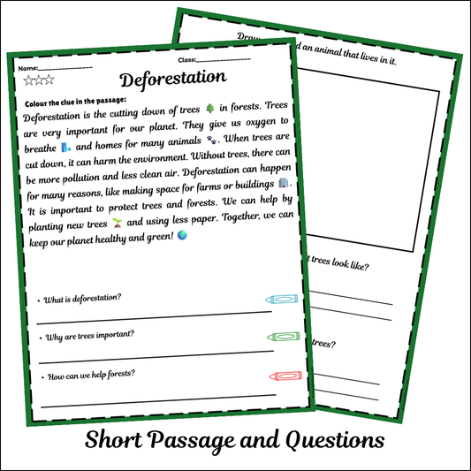 Deforestation | Short Reading Comprehension Creative Worksheet